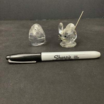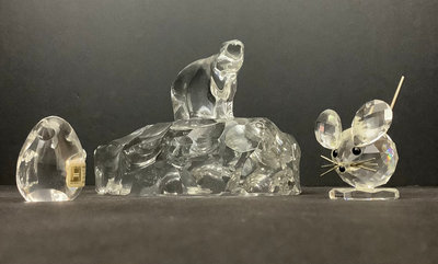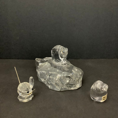 Vintage Hadeland Norway crystal polar bear, 7x4x4. Hadeland crystal bird, made in Norway 1.75h. Swarovski mouse, 2.5h. 3 pieces.