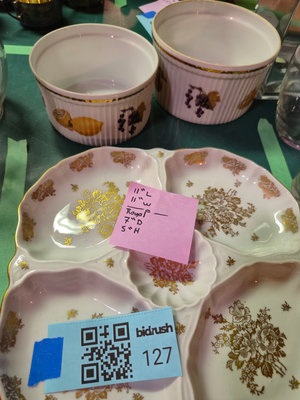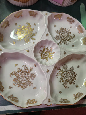 Vintage French hand painted 22K gold porcelain 5-section serving platter, Porcelaine de France. Floral motif. 11 x 11". Royal Worchester fireproof casserole round, shape 46 sizes 1 and 2. Made in England. **BRING OWN PACKING MATERIALS