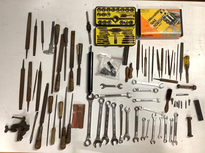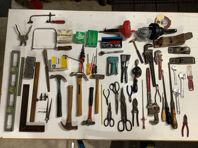 Assortment of household hand tools, miscellaneous hardware and fasteners. 50 plus pieces in 3 containers.
