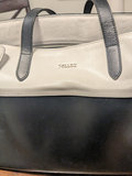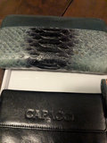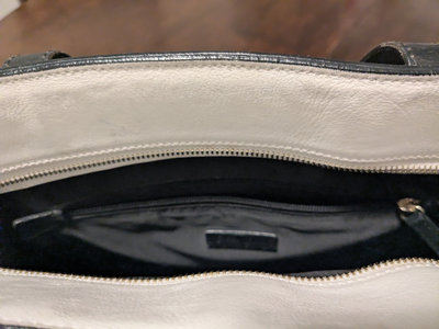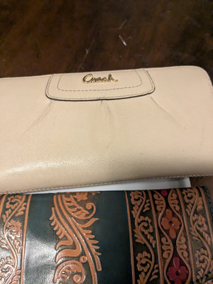 - 5-piece lot: 1 large handbag + 4 small leather wallets - Brands included: Pollini, Coach, Capacci - Item types: tote/shoulder bag, zip-around wallet, bifold wallet, long wallet, envelope clutch - Primary colors: black, white, cream/beige, teal/blue, multicolor