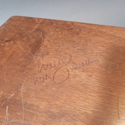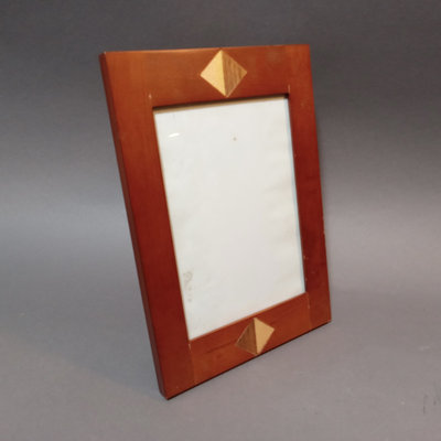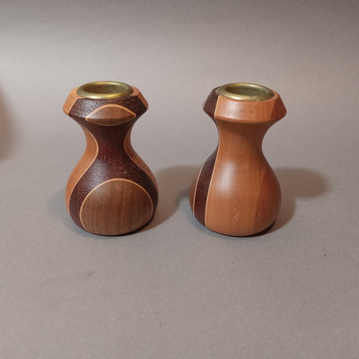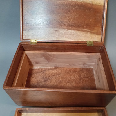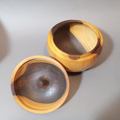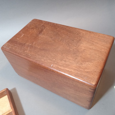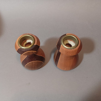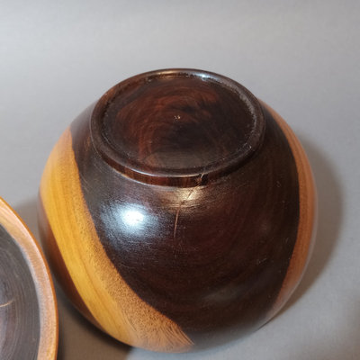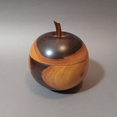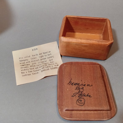 Handmade Koa wood jewelry box with tray, 10x6x5.25, signed on bottom, and small trinket box, 3.25x2.5x1.75. Frame 9.5x6.5, fits 4.5x6.5. Pair candle holders from Once A Tree, Burlington VT, 3.25h. Apple trinket box, 4.5d x 5h. Beads, or maybe use them for darning socks. 8 pieces.