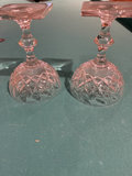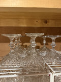 A twelve-piece Hawkes crystal sherbet glass set with diamond-cut bowls, clear stems, and square bases.