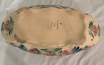 Vintage 1940s Quimper jardiniere , serving platter or planter, #168. Has one tiny ding on one edge, otherwise perfect for French farmhouse style.