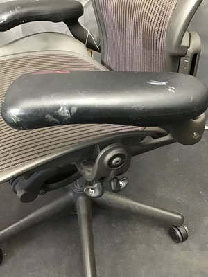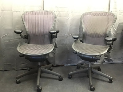 Ergonomic office chairs, used by artists, so they come with character and one-of-a-kind paint splashes. Aeron style black chairs By Henry Miller. 25x24x41, adjustable. Bring appropriate vehicle to pickup. 2 pieces.
