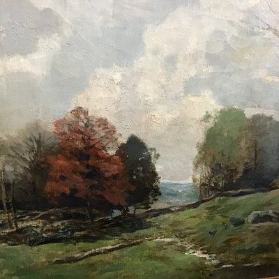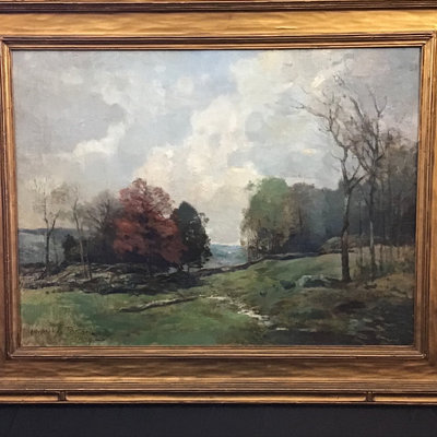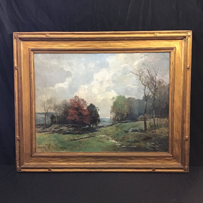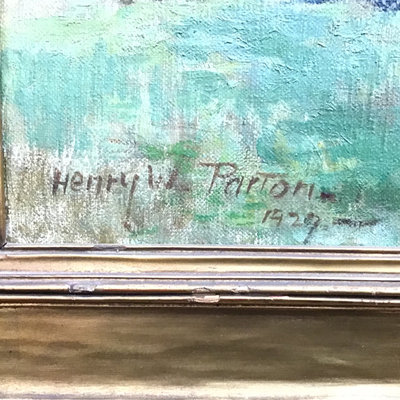 Henry Woodbridge Parton (American, 1858-1933). Untitled paint on canvas, 1929. Gold leaf/gilt art deco frame. Art 18.25x24.25, frame 24.5x30.5. 1 piece.