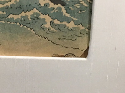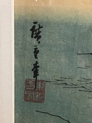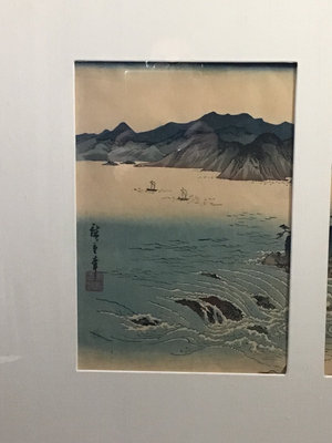 Atagawa Hiroshige (Japanese, 1797-1858) "The Whirlpools of Awa" framed woodblock prints, with 3-window mat and framed, art 13.75x9.25, frame 25.5x42.5. 1 piece.