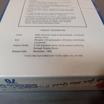 Sealed box of Hockey Canada Cup 76 collectible trading cards by The Future Trends Experience Ltd. 1 box.
