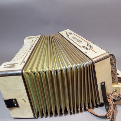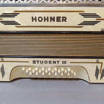Vintage Hohner Student III accordian in carrying case. Serial No. A440. Made by M. Hohner, Germany. Works! 13x15x8. 1 piece.