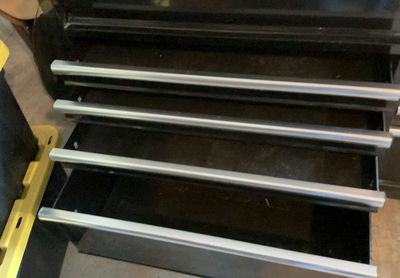 52” x 24” x 38”, 9 drawers, on wheels, has an electric power bar and plug to have up to 6 tools plugged in. Very clean, like new! This will have to be one of the last items picked up as smaller lots are stacked on top.