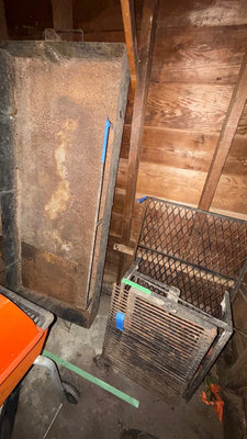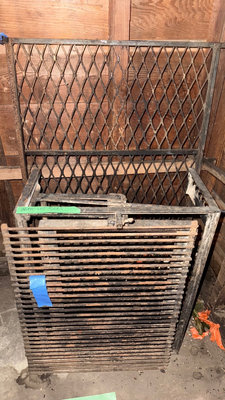 Large scale BBQ grill box and grill grates. As is. Bring help to move.
