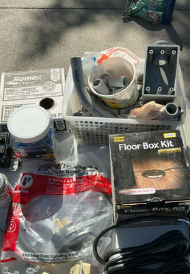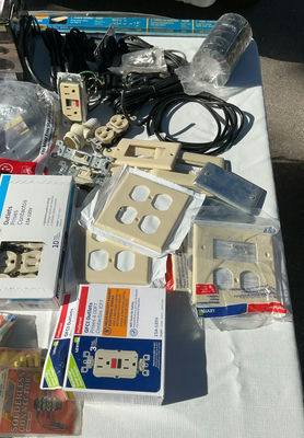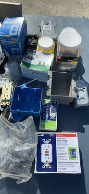 Outlets, covers, tape, wiring, boxes, connectors and all you see