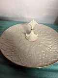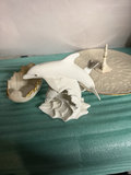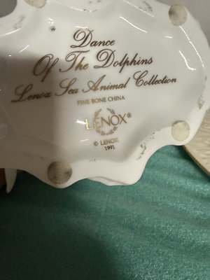 A collection of Lenox fine bone china decorative pieces including a dolphin figurine leaping over a wave, a gilt-edged scallop shell dish, and a large embossed plate with a central pedestal, all from the Lenox Sea Animal Collection (Dance of the Dolphins) with Lenox marks and a 1991 date.