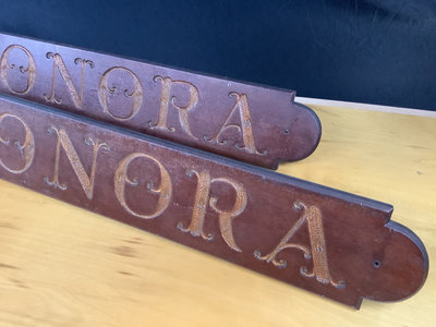 Pair of hand crafted oak name plates for a boat. 42x6. 2 pieces.