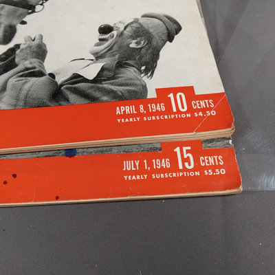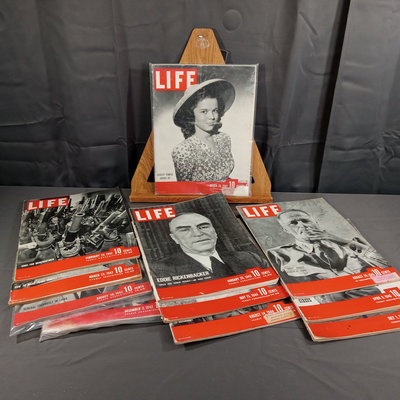 Selected issues of Life Magazine from 1942 to 1946. Condition varies, all covers are intact. 11 pieces.