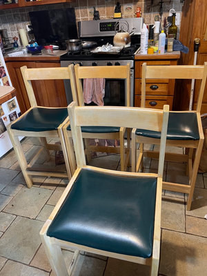 4 counter high chairs for use at a kitchen island. Seats are 24 inches high.