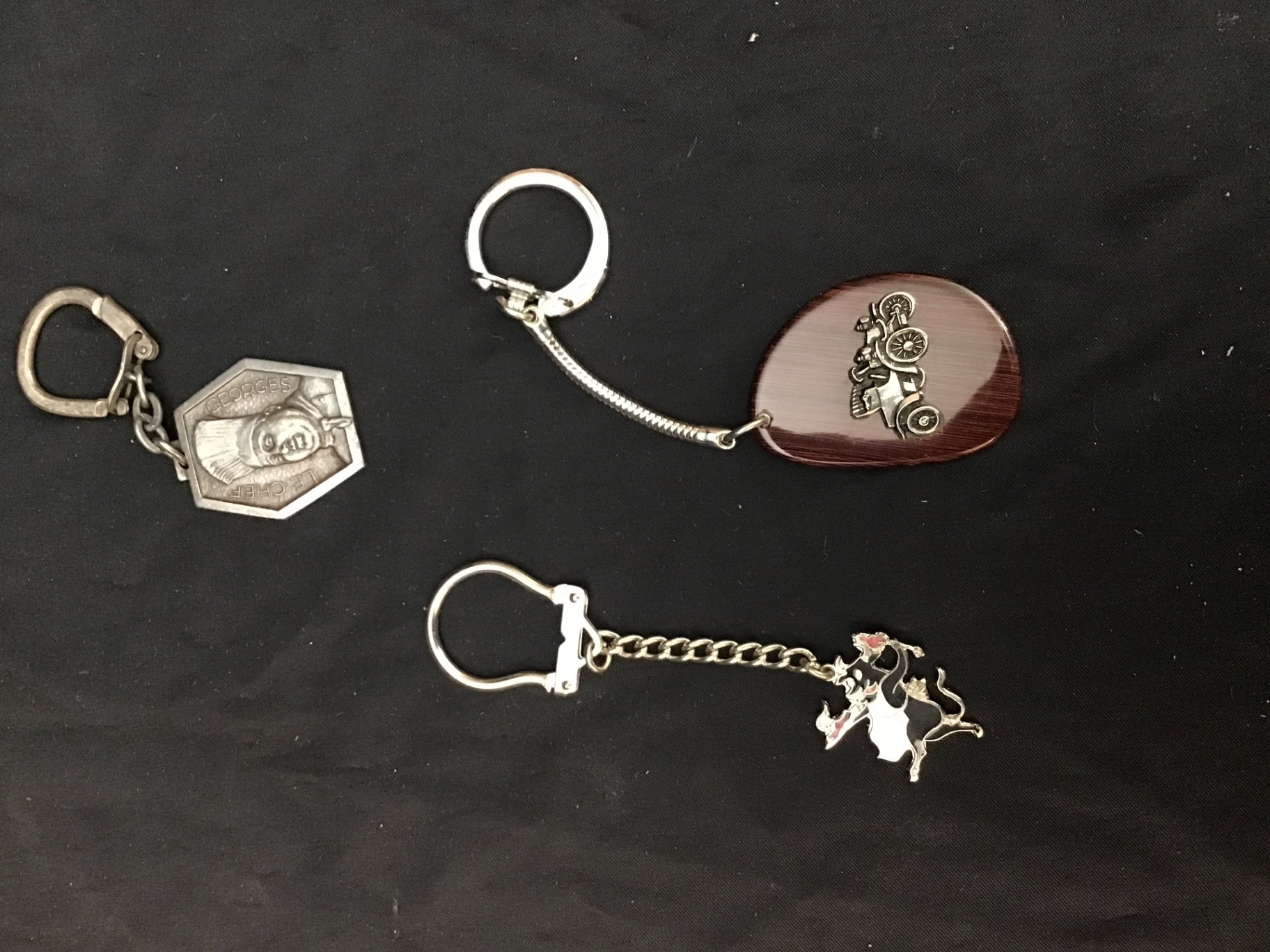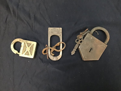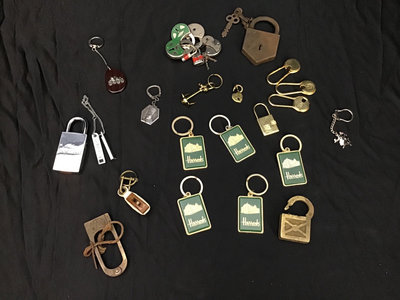 Vintage and newer padlocks including never used Punch-Lock. Nautical themed, Harrod's and more key chains. French culinary table du Roy numbered keychain. 25 pieces.