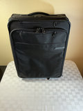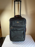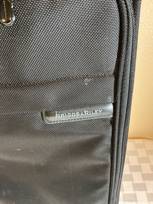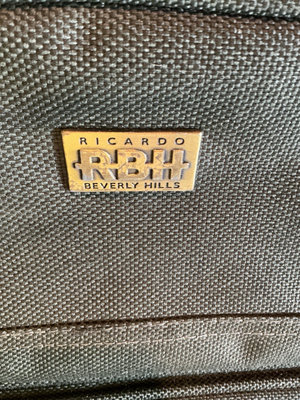 A multi-piece luggage collection including Briggs & Riley and Ricardo Beverly Hills dark green pair of rolling suitcases and pair of carrying bags, featuring multiple zip pockets, carry handles, and built-in wheels.