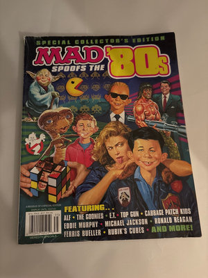 The content of the magazine spoofs 1980s pop culture including E.T. Michael Jackson , Ronald Reagan , Rubin’s cube, Ferris Bueller etc. 96 pages, published in specific publication date around August 21, 2023. The cover itself indicates it was for display until October 27, 2023.