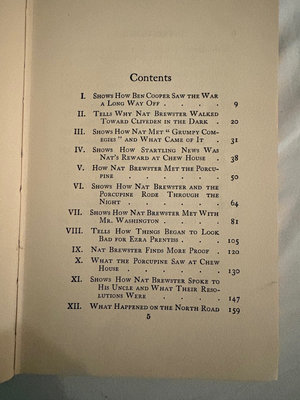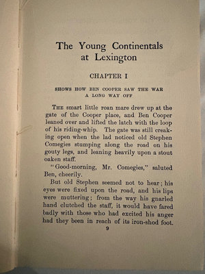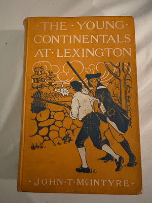 The YoungContinentals….copyright 1909, Penn Publishing Co, Philadelphia. This issue published 1912. A historical adventure novel, John McIntyre follows four young patriots at the lead up to the revolutionary war, focusing on the events that culminated in the battles at Lexington and Concord. The front cover binding is loose and torn some inside. The first cover page is not attached but included.