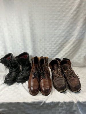 Two pairs of Danner’s size 10.5 in good shape, one pair of Thursday dress shoes, like new condition also 10.5 in size. Steel toed Carhartt work boots and insulated high top work boots both sized 11.