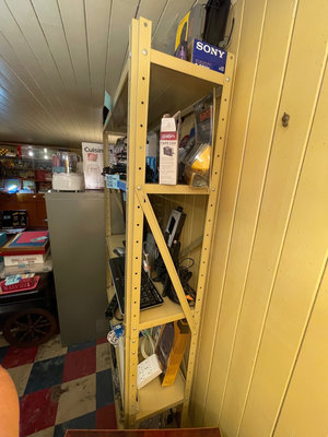 5-shelf metal shelving unit. 35 1/2 inches wide by 11 1/2 inches deep by 71 inches high. Note: Contents not included! ** BRING OWN TOOLS TO DISASSEMBLE & HELP TO MOVE OUT OF BASEMENT