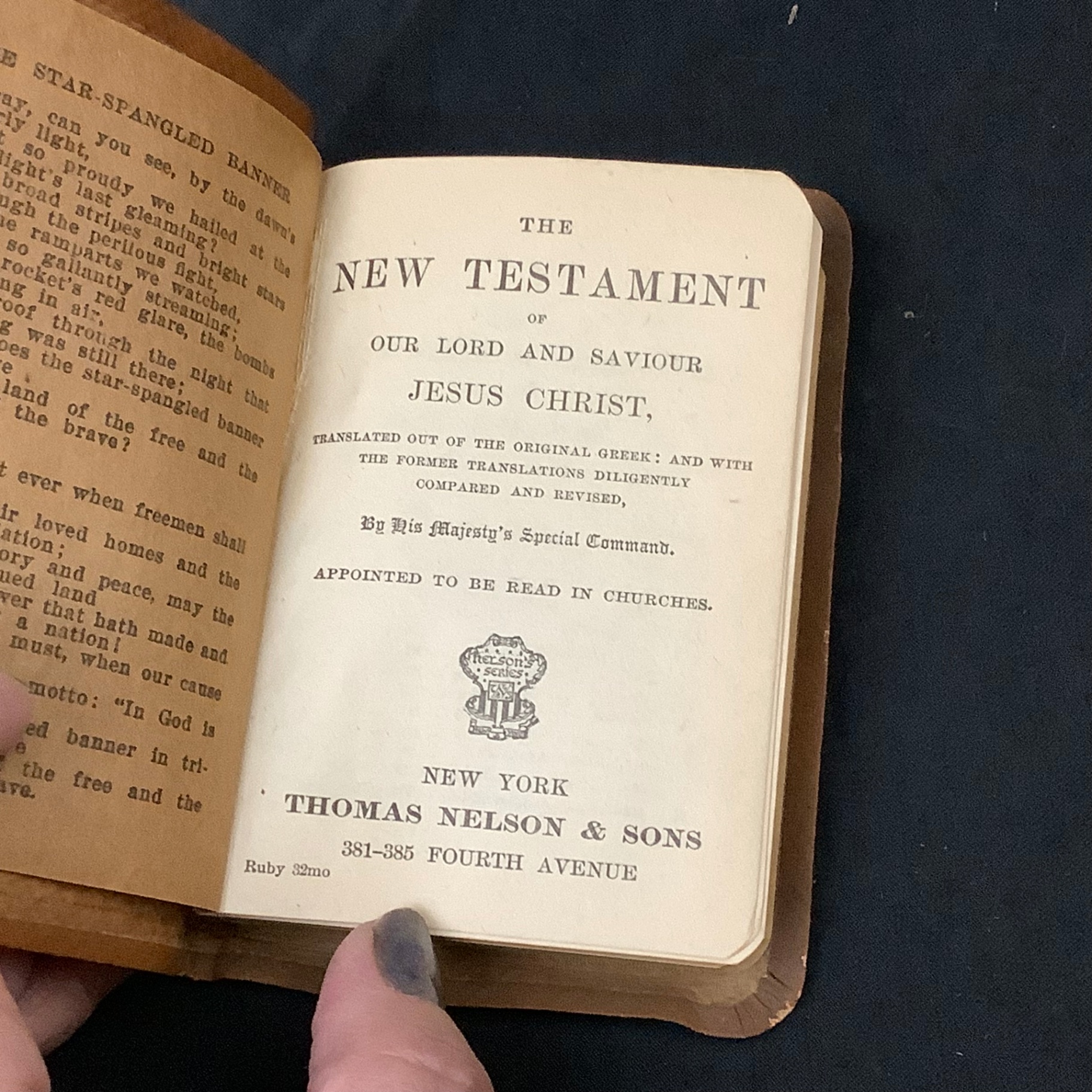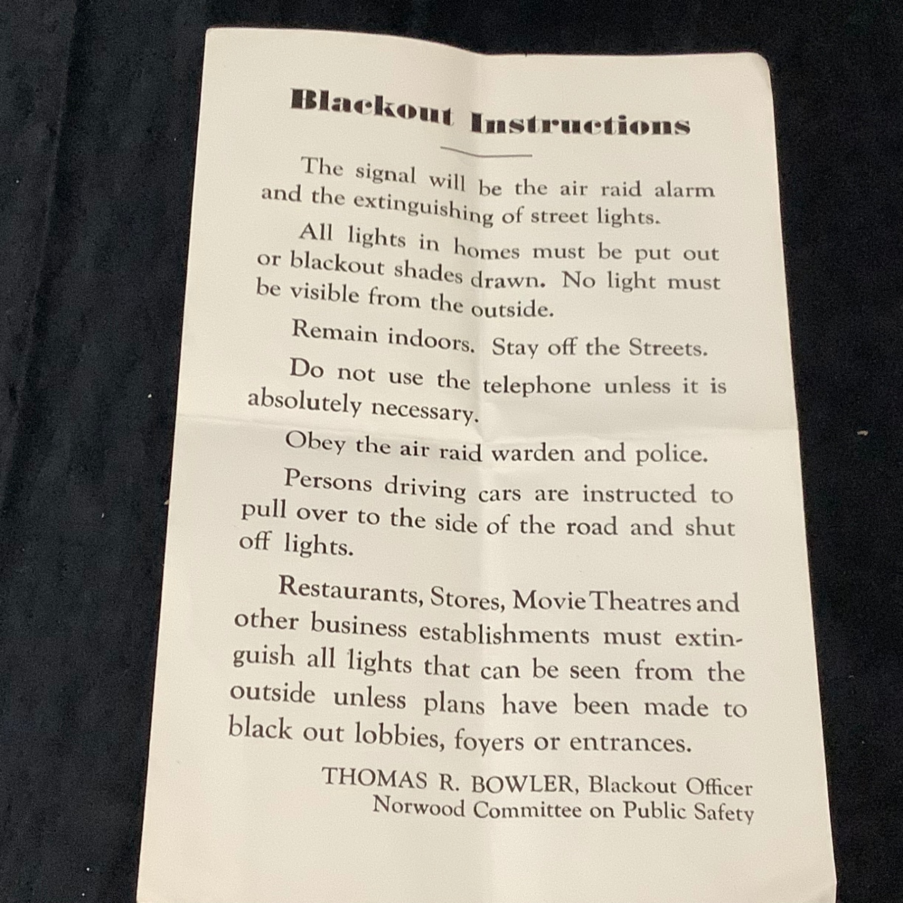 Military ephemera spanning several wars. War stamps, Soldier's pocket bible, old black & white photogaphs, The Stimulant newsletter, burial flags, Blackout instructions, satirical "Auction Sale" for the White House, and more. 10 plus pieces.
