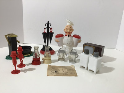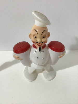 Chef is largest at 5x2.5x 5.75. One milk glass set. 8 sets.