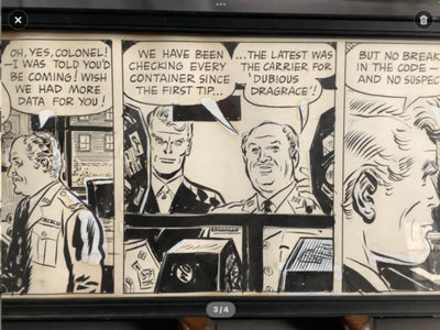 Original comic strip art of Steve Canyon. Field Enterprises, Inc 1970. Framed 8x24. 1 piece.