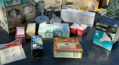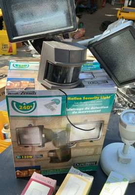 There are two sets of outdoor motion sensor lights, one is inside a box.