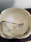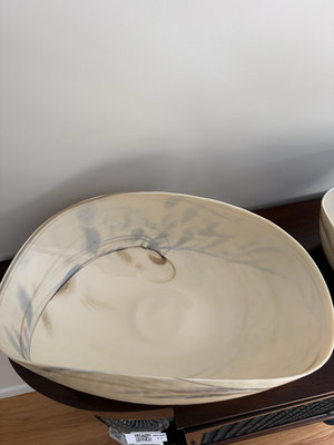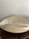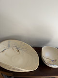 Two decorative Murano art glass bowls with ivory and blue marbled pattern; one larger oval bowl and one smaller bowl.20x6 and 10x6