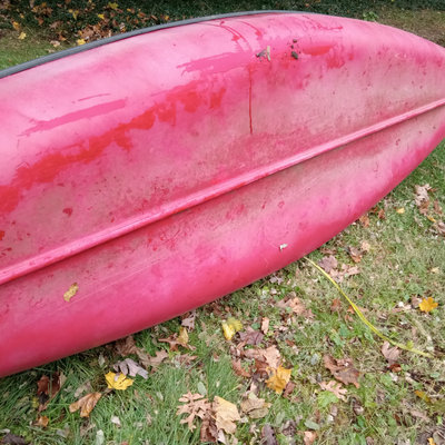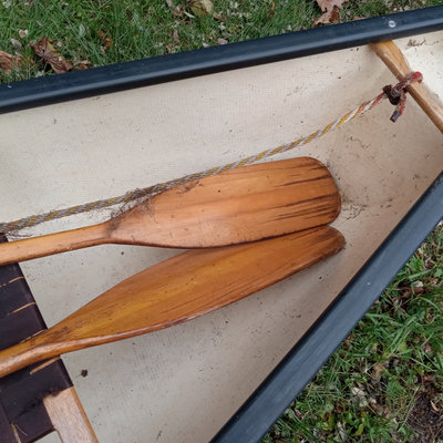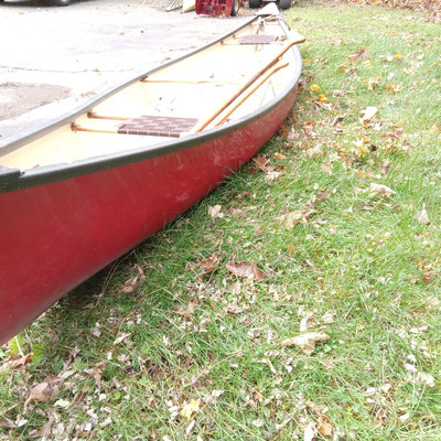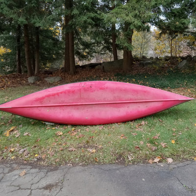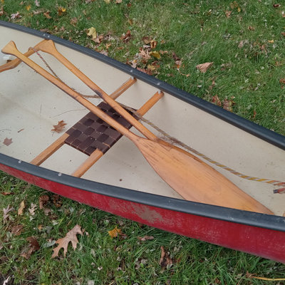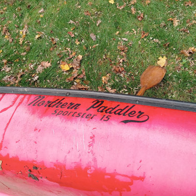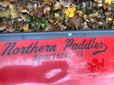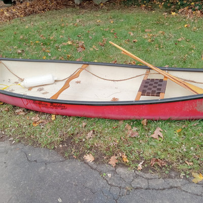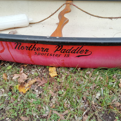 Northern Paddler Sporster 15 canoe, 180in long x 38in wide. Includes 2 long paddles, and buoy. Heavy, bring help and appropriate vehicle to pickup. No visible holes/damage, untested. 4 pieces.