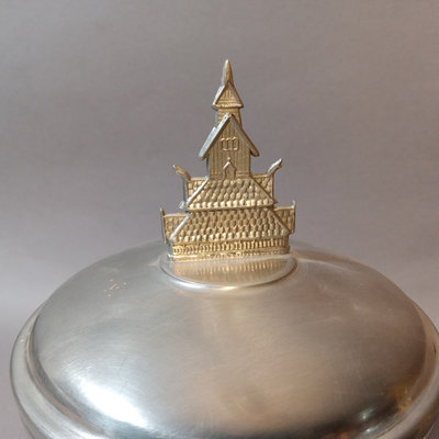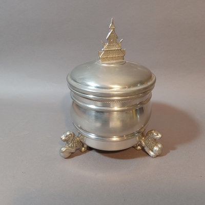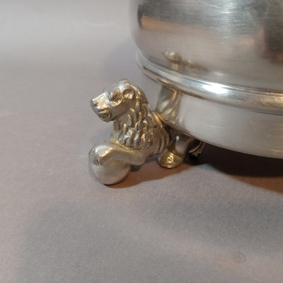 Vintage OMA TINN pewter tobacco jar with lion feet, made in Germany, 7h x 4.5d. 1 piece.