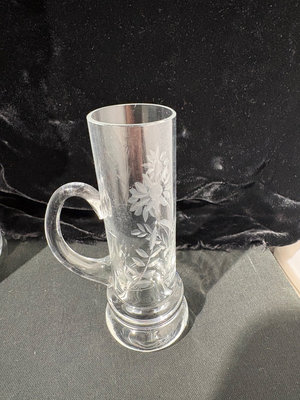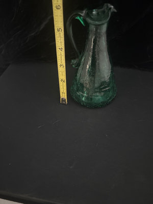 Hand-blown glass pitcher, mixing and cocktails with glass stirrer. Green crackle glass pitcher with glass stirrers . Princess House cordial glasses with etched flowers MCM colored shot glasses