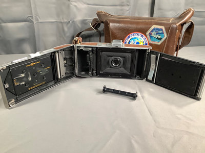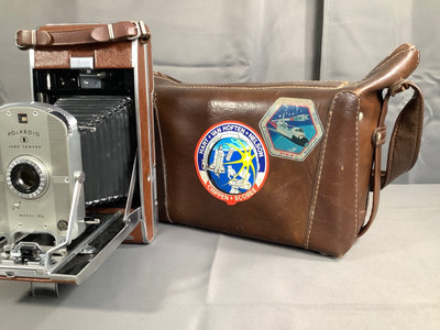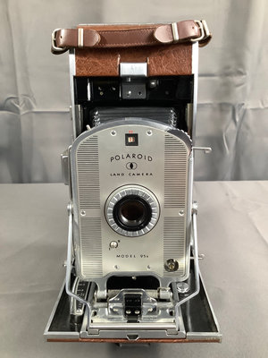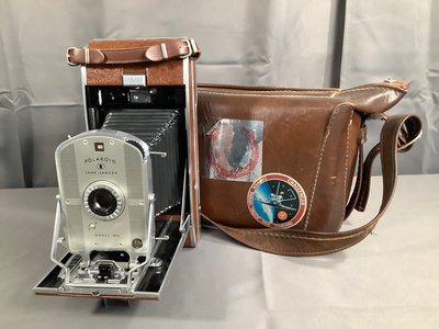 Polaroid Land Camera model 95a. No pin holes or cracks in the bellows. Exceptionally light use for its age. Includes leather carry bag. 2 pieces.