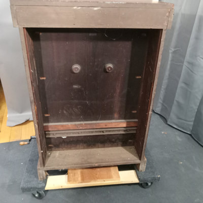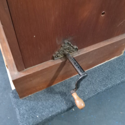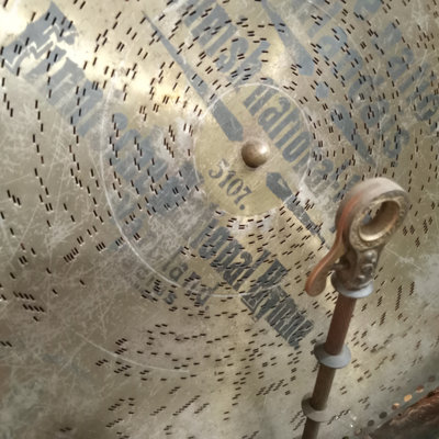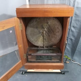 Wood case polyphone upright music box with one brass disc, crank operated. Crank is cracked at the contact point but still catches and turns. Disc is stamped: Hymne national finlandais / no. 5107 Finnish national hymn / Finnische National Hymne, Vart land / Pacius Made in Germany. Works! Wood case is 23x16x34.5. Heavy, bring help and appropriate vehicle to pickup. 1 piece.
