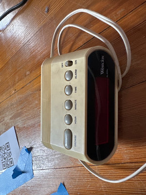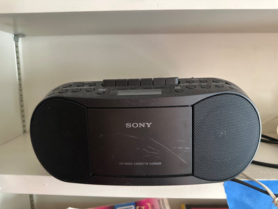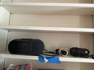 Sony CD/Radio Cassette-Corder boombox, Sharp digital alarm clock, Westclox analog/digital alarm clocks. Reading lamp.