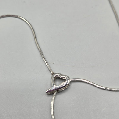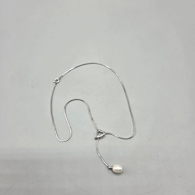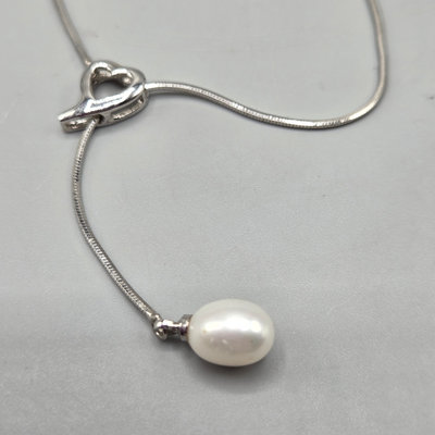Under 5 grams including pearl. Necklace heart pendant slides to different lengths