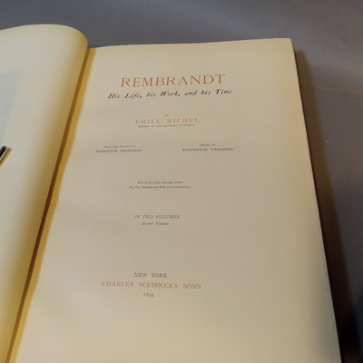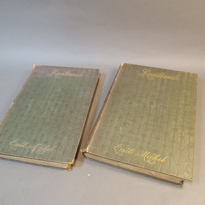 Rembrandt: His Life, His Work, and His Time by Emile Michel, in 2 vols, Charles Scribner's Sons, New York, 1894. Wear on spine, cracking on inside spine, large quarto. 2 pieces.