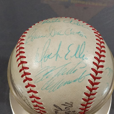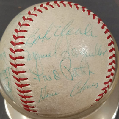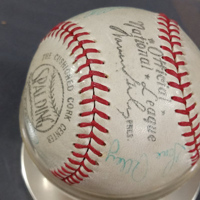 Spalding Official National League baseball produced between 1951-1969 with signatures that suggest it is from the late 1960s Pittsburgh Pirates. Signatures include: Roberto Clemente, Willie Stargell, Jose Pagan, Fred Patek, Manuel Sanguillen, Bob Veale, Matty Alou, Bruce Dal Canton, Dock Ellis, Gene Alley, Bill Mazeroski, Richie Hebner, and several others. No COA available/unauthenticated. Also included several Topps baseball trading cards from the 1960s and Sports Illustrated Magazine from 1967. 8 pieces.