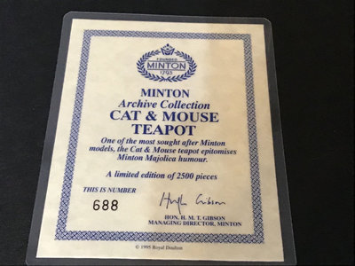 Cat & Mouse Teapot from the Minton Archive Collection, no. 688 of 2500, made in England 1995 by Royal Doulton / Minton. 8h. 1 piece.