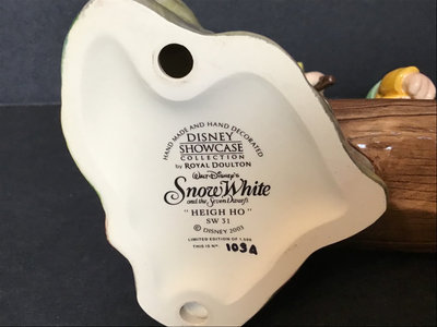 Royal Doulton SW31 Heigh-Ho, limited edition no. 1034 of 1500, from the Disney Showcase Collection, featuring the Seven Dwarfs marching on a log. Hand made and hand decorated by Royal Doulton, copyright Disney 2003. Made in Thailand. 13x4x5. 1 piece.