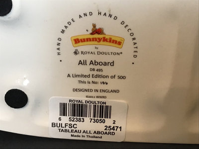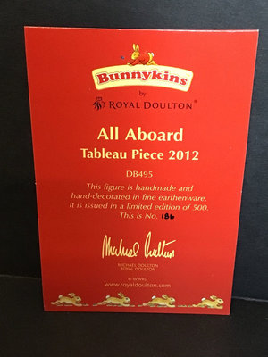 Royal Doulton DB495 All Aboard Tableau, no. 186 of 50, designed in England, made in Thailand 2011. 10x3.75x6.5. 1 piece.