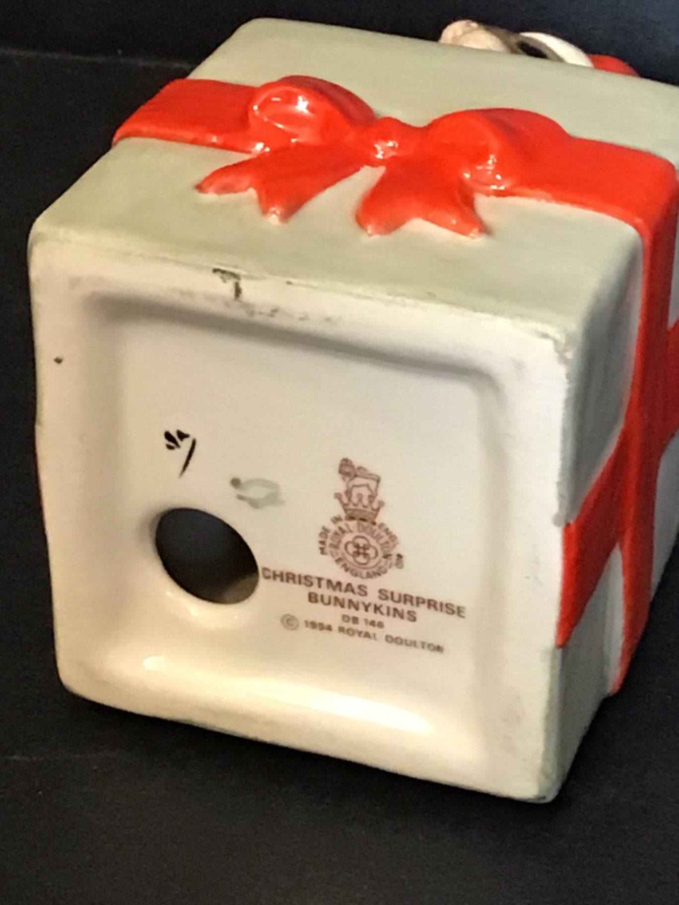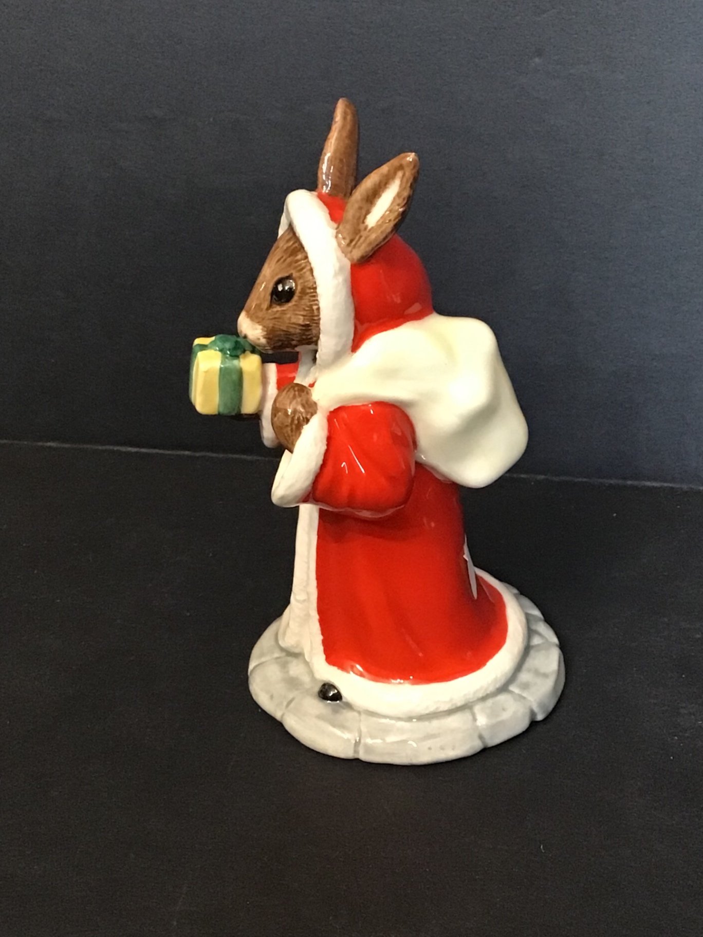 Royal Doulton DB196 Angel, 4h. DB146 Christmas Surprise, 4h. DB285 Christmas Morning, The Occasions Collection, made in China, 5h. DB237 Father Christmas no.698 of 2500, signed by Michael Doulton, 5h. Royal Doulton, made in England unless otherwise noted. 4 pieces.
