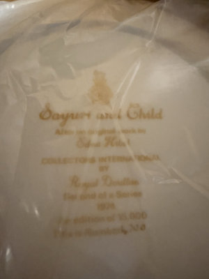 A set of three decorative ceramic plates featuring mother-and-child scenes, each based on an original Edna Hibel work. Titles include Colette and Child, Kristina and Child, and Sayuri and Child. Produced as limited editions by Royal Doulton (Collectors International), First of a Series in the early 1970s, with edition numbers indicating a quantity around 15,000. Includes original packaging/boxes and protective wrapping.