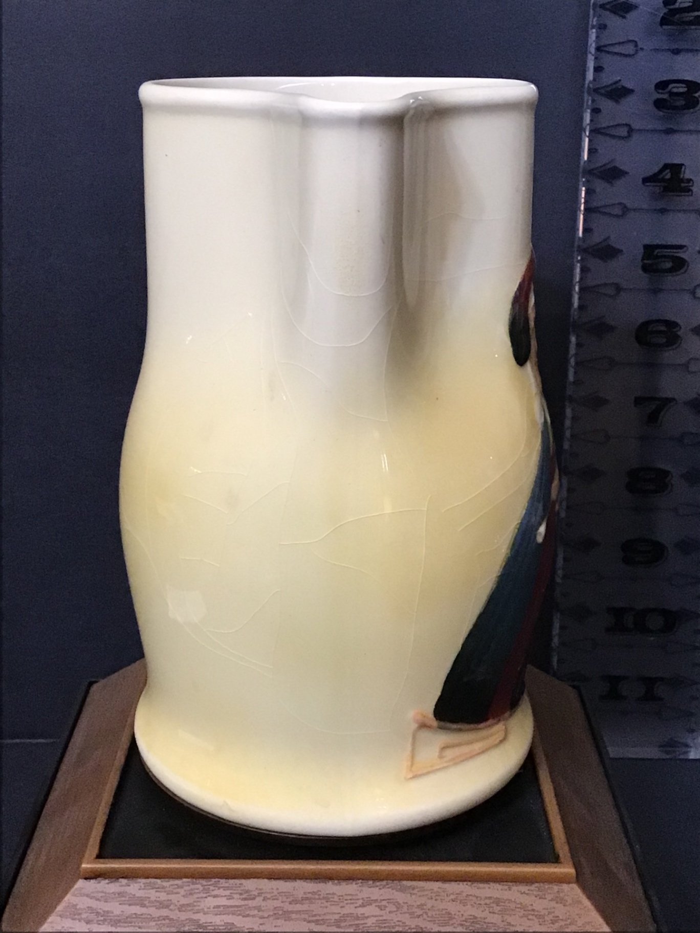 Royal Doulton jug or pitcher featuring John Barleycorn, crazing on glaze, 6.5h. Royal Doulton, made in England, circa 1930s. 1 piece.