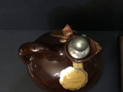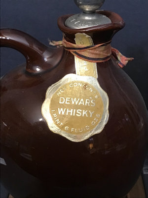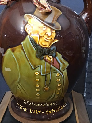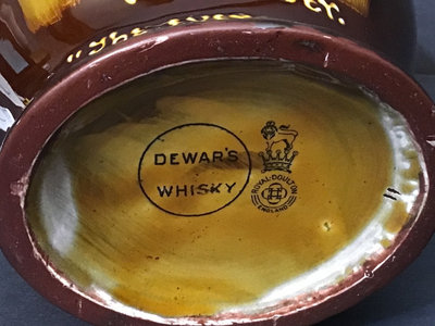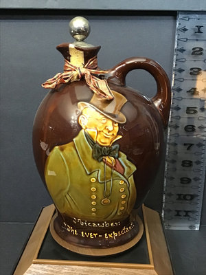 Royal Doulton Kingsware Micawber "The Ever-Expectant" Decanter / Jug from Dewars, made between 1902-1930 for Dewar's Whiskey, made in England, 8.5h. 1 piece.