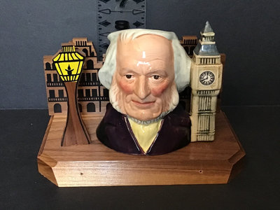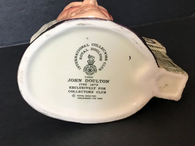 Royal Doulton D6656 John Doulton (1793-1873), created exclusively for the RDICC in 1980, 4.5h, made in England. Includes wood display (name plaque on the front removed), 7.5x4.5x4. 2 pieces.