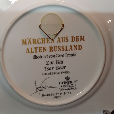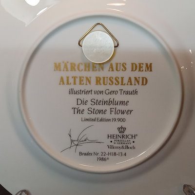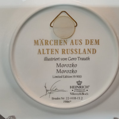 Heinrich Porcelain West Germany for Villeroy & Boch, 1986. Plates for Morozko, Tsar Bear, Tsar Sultan, and The Stone Flower, 8.75d. 4 pieces.