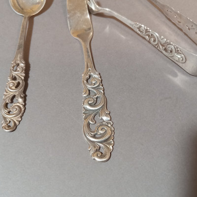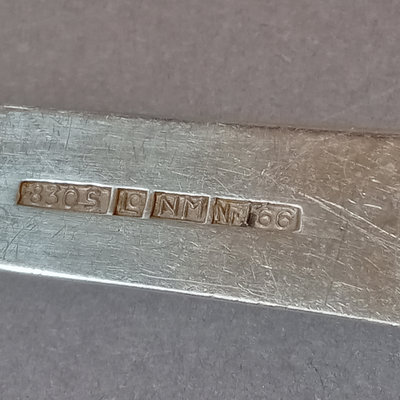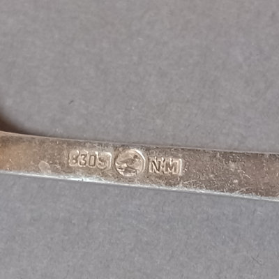 Scandinavian flatware, similarly patterend handles. Marked 830 S. Overall 156.8dwt. 8 pieces.