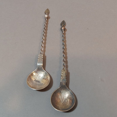 Scandinavian spoons with twist or fancy handles, all. marked 830S. Overall 60.5dwt. 4 pieces.